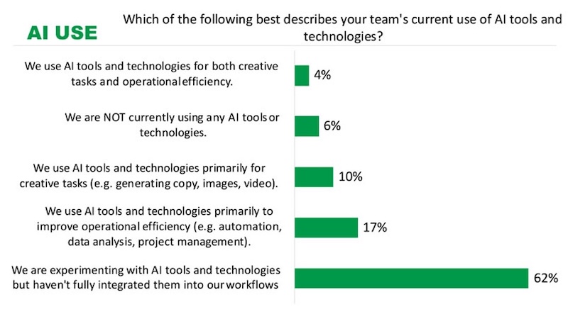 Here the ANA shared survey data that reveals the extent to which in-house agencies are adopting AI as well as the uses to which they are putting it: