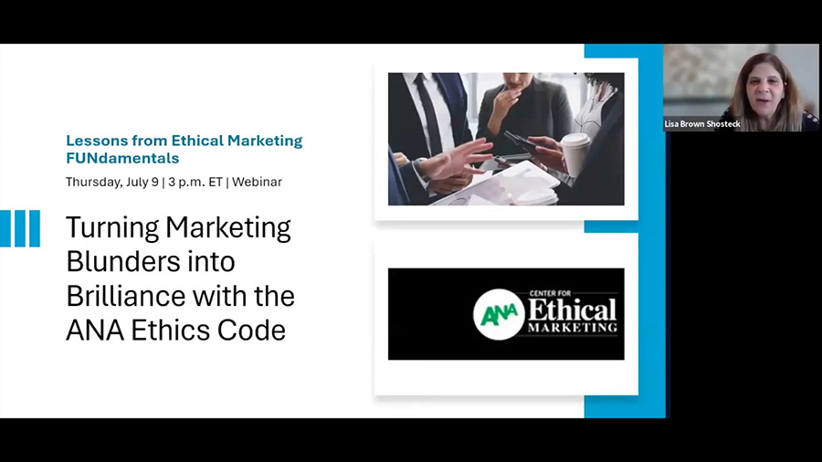 Open to all ANA members with a marketing background and interest in ethics, best practices, and related compliance topics, the Ethics Policy Committee meets quarterly to review pending activities at the federal and state levels, review and provide input to shaping the Guidelines for Ethical Business Practices and related ethical standards, and learn about best practices and key topics in ethical marketing across the marketing ecosystem.