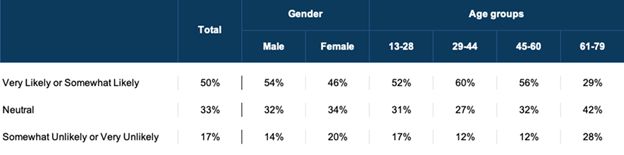 Q. How likely are you to engage with a brand's Super Bowl content (non-TV) during the game?