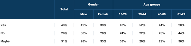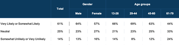 Music helps to open wallets. Most respondents have purchased or would purchase something after seeing an ad with a musician or song they love. Millennials are the most likely to do so.
