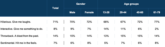Q. When a Super Bowl ad uses a nostalgic song, which of the below matters most to you?