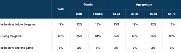 That figure goes up to 55 percent during the game, reflecting "second screen" behavior.