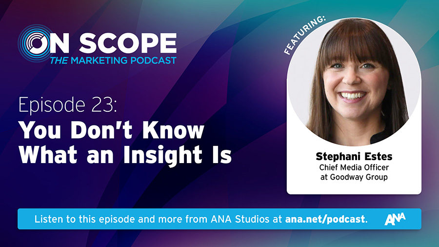 Stephani Estes, chief media officer at Goodway Group, joined the On Scope podcast to shed light on how marketers can move away from wasteful measurement efforts, discuss what true insight looks like, provide tips for how marketers can better communicate across the organization, and more.