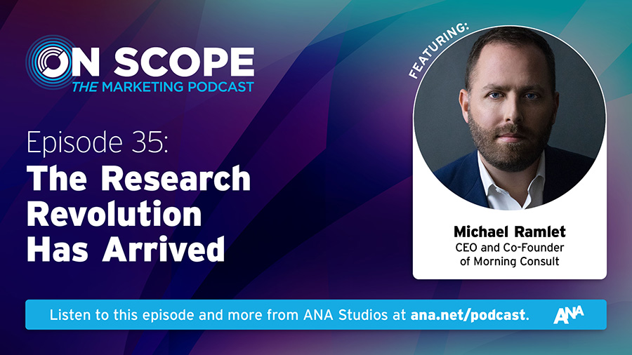 Morning Consult CEO Michael Ramlet joined On Scope to discuss the potential of AI-powered market research to reshape marketing strategies through broader access to consumer data. With host Mike Berberich, he explored democratized data, AI bias, synthetic audiences, and the enduring role of human insight.